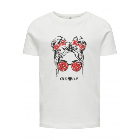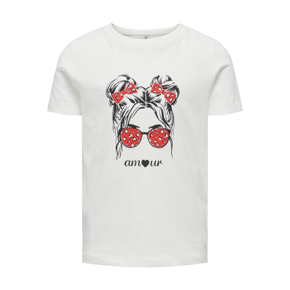 Maglia mezza manica bambina/ragazza Only bianca amour cuori rossi
