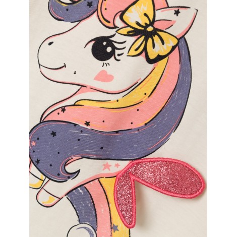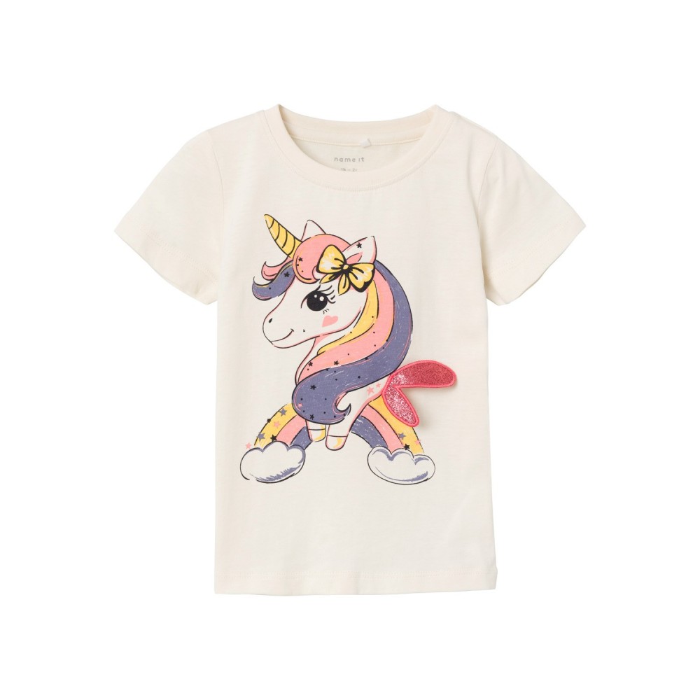 Maglia mezza manica bambina Name it bianca stampa unicorno, dettaglio ali in rilievo