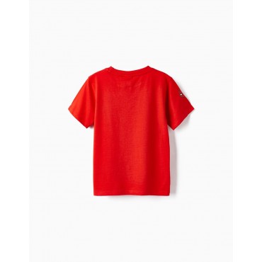 T-shirt rossa Marvel a maniche corte per bambino, 100% cotone. Colletto a costine. Stampa frontale di Spider-Man. We Care: articolo con certificazione Oeko-Tex Standard 100, che garantisce l'assenza di sostanze nocive o irritanti per la pelle. Una maglietta pratica e comoda, perfetta per i fan di Spider-Man.
