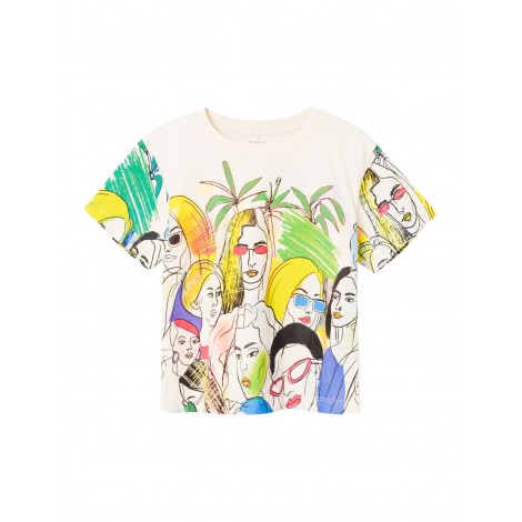 Maglia bambina/ragazza Name it bianca stampa fumetti, modello corto e largo