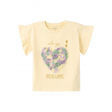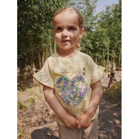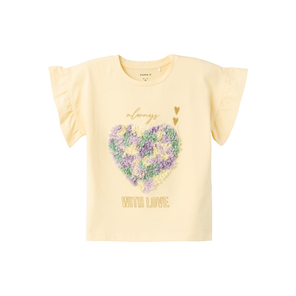 Maglia bambina Name it gialla cuore in rilievo, manica arricciata, vestibilità regolare