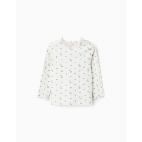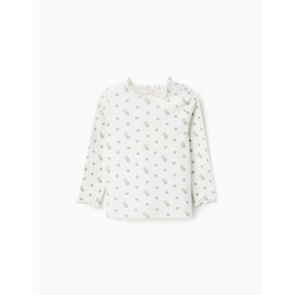 Maglia neonata Zippy bianca fantasia fiori verdi a costine