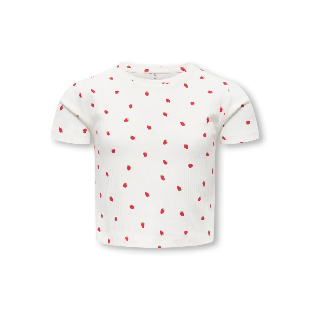 Maglia bambina/ragazza Only bianca fantasia fragole