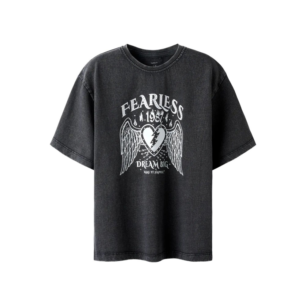 Maglia bambina/ragazza Name it nera stampa Fearless
