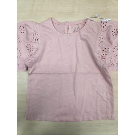 Maglia bambina Zippy rosa manica in pizzo sangallo