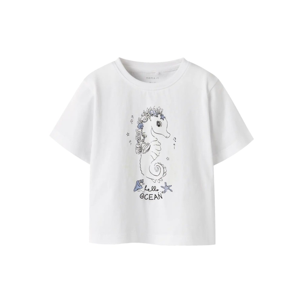 Maglia bambina Name it bianca stampa cavalluccio marino