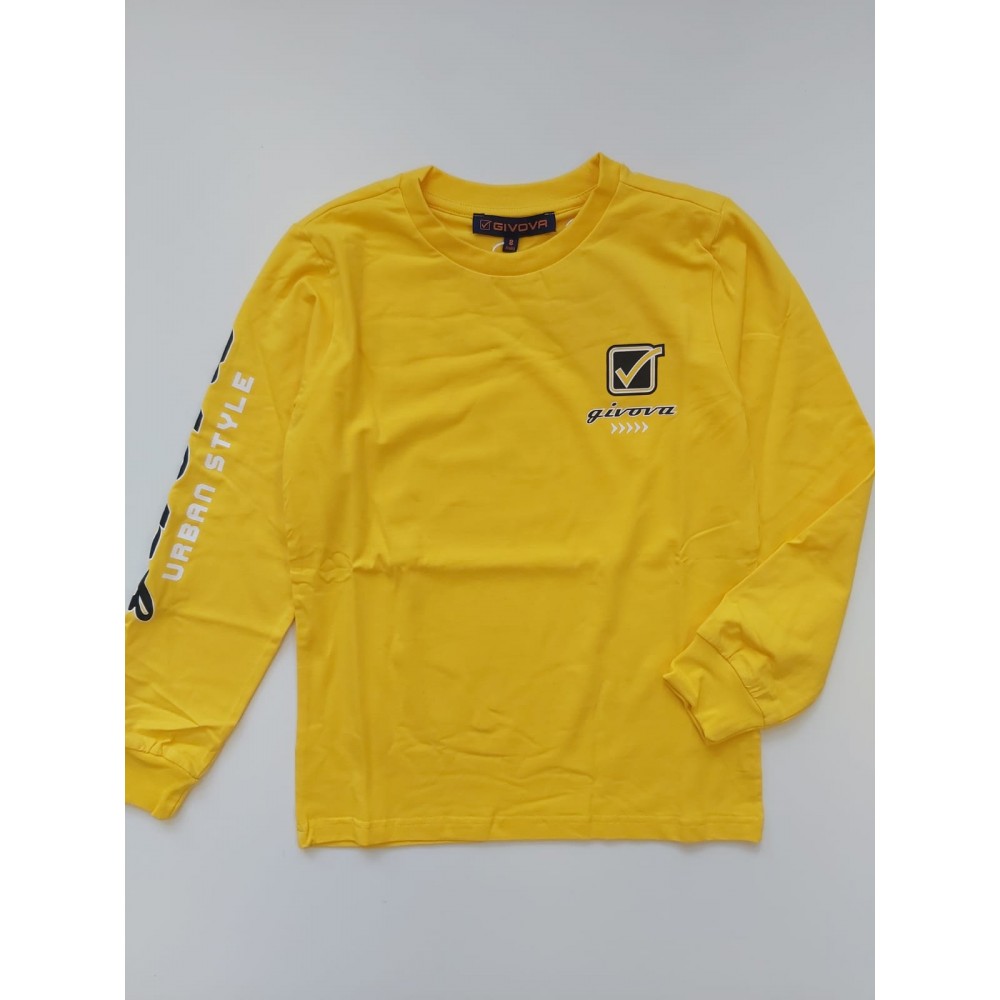 Maglia bambino Givova gialla con polsino, scritta frontale e sul retro