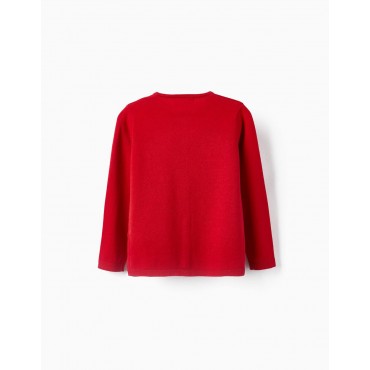 Cardigan rossa lavorata a maglia per bambina, realizzata in misto cotone. Chiusura frontale con bottoni effetto madreperla. Polsini a costine per una migliore vestibilità. Piccole aperture sui polsini. Maglia morbida e confortevole. Un capo versatile, perfetto per completare una varietà di look, sia casual che tradizionali.