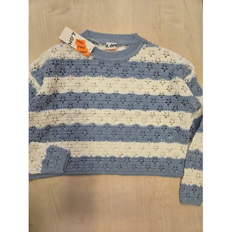 Maglioncino bambina/ragazza Losan traforato, bianco righe celesti, corto e largo