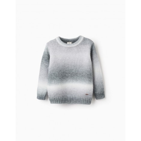 Maglione per ragazzi, in tonalità sfumate di bianco e grigio. Bordi a coste per una vestibilità perfetta. Etichetta del marchio in rilievo sull'orlo. Un maglione flessibile e comodo, ideale per ogni occasione.
