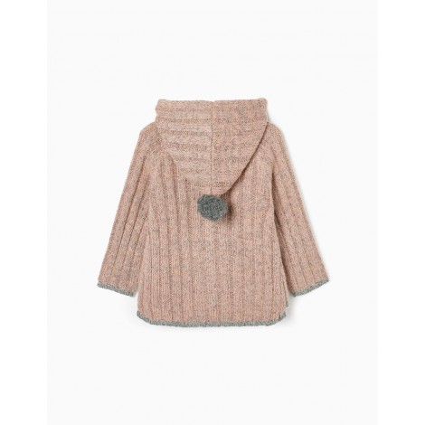 Cardigan pesante per bambina, realizzato in un mix di materiali sintetici, lana e fili di lurex argento. Cappuccio lungo con pon pon all'estremità. Si chiude con bottoni. Fondo leggermente asimmetrico, leggermente più lungo dietro, con piccoli spacchi laterali. Estremità in maglia grigia a contrasto. Un cardigan comodo, caldo e adorabile per completare i look autunno inverno.