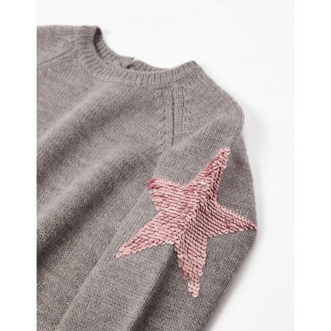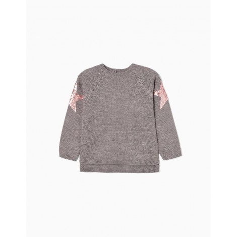 Maglione grigio con paillettes reversibili. Collo, polsini e fondo a costine. Base leggermente asimmetrica con piccoli spacchi laterali per un taglio più fluido. Chiusura con bottoni sul retro. Un maglione accogliente con dettagli originali.