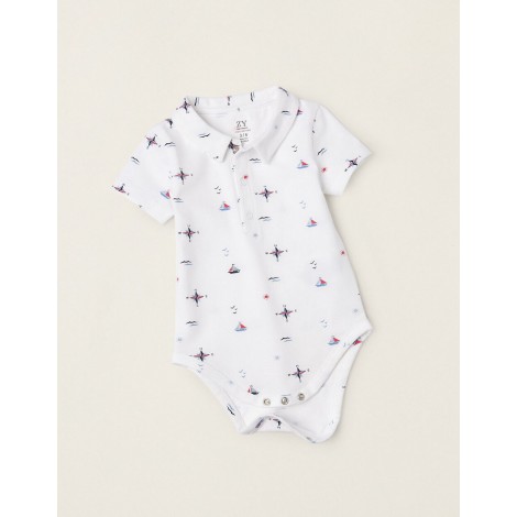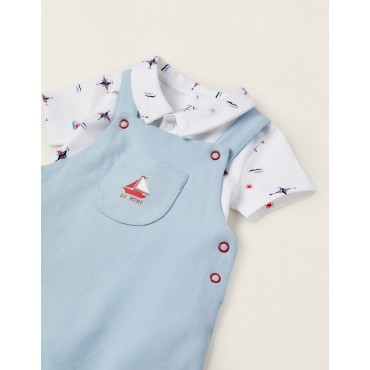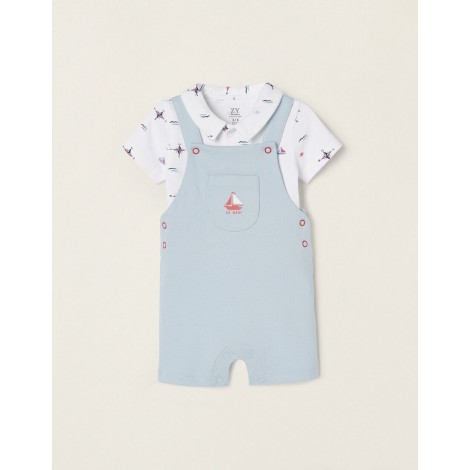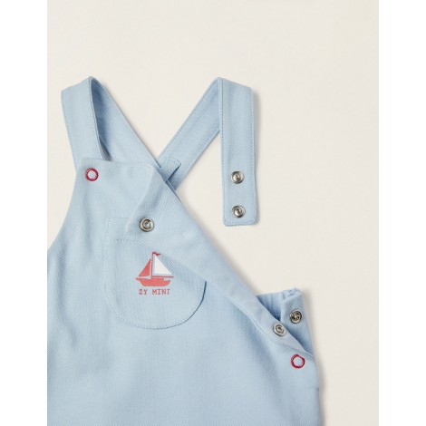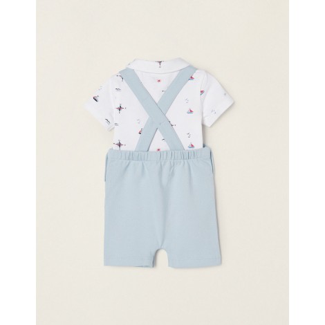 Completo per neonato, in cotone con un tocco di stretch per maggiore comfort e libertà di movimento. Pagliaccetto corto in piquet blu con taschino sul petto, stampa barca e dettagli rossi a contrasto. Cinghie regolabili. Bottoni sui lati e automatici sul cavallo per un facile cambio del pannolino. Body polo bianco con fantasia nautica. Maniche corte, bottoni a pressione sul collo ed etichetta interna stampata per non irritare la pelle. Un vestito adorabile e comodo per i più piccoli.