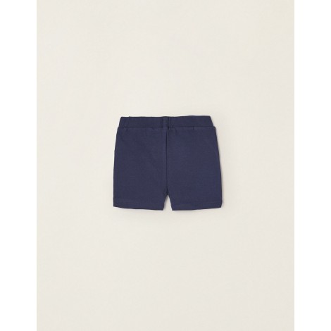 Shorts blu scuro per neonato, in piquet di cotone con un tocco di stretch per maggiore comfort e libertà di movimento. Cintura elastica per vestirsi facilmente con un bottone sul davanti. Tasche decorative. Un capo comodo per tutti gli stili.