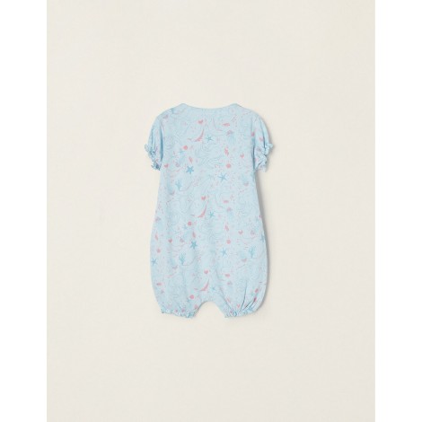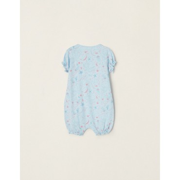 Confezione da due pigiamini stile tutina per neonata, 100% cotone. Include un pagliaccetto rosa con stampa frontale e uno blu con motivo stampato. Scollo tondo con fiocco decorativo e fondo/maniche elasticizzato con finitura ondulata per aggiungere un tocco delicato. Chiusure a scatto sulla spalla e sul cavallo per vestirsi facilmente. Etichetta interna stampata per non irritare la pelle. Il tipo di pigiama perfetto per le calde notti estive.