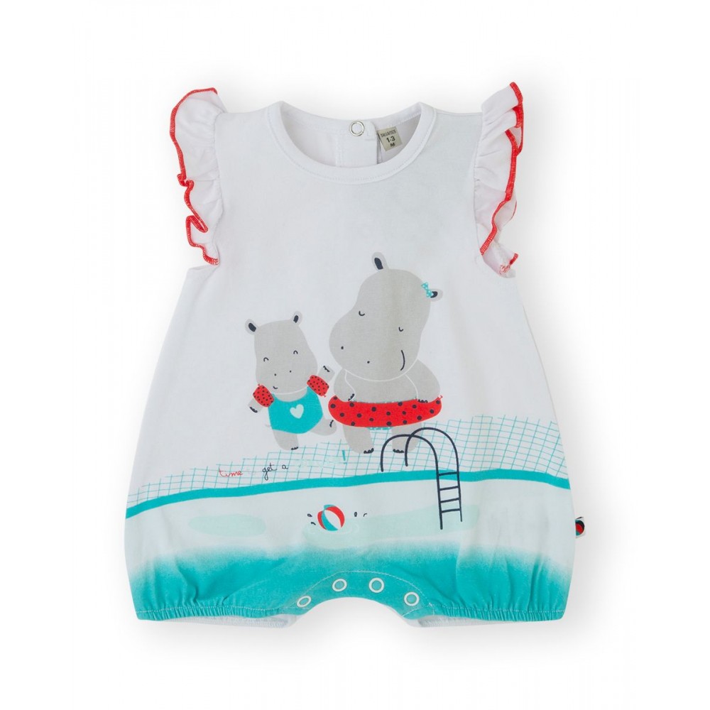Pagliaccetto corto neonata Canada bianco stampa ippopotami