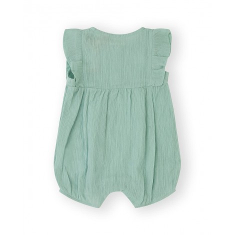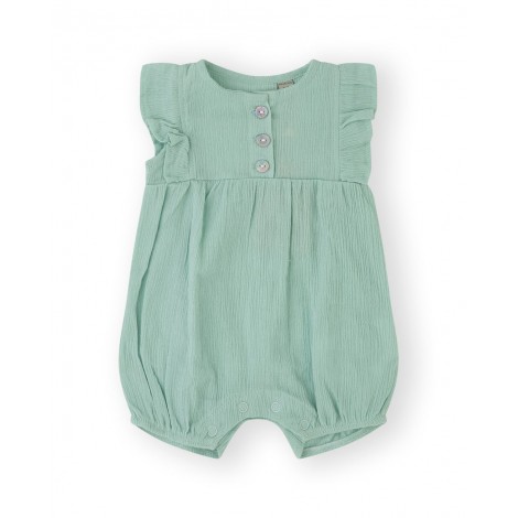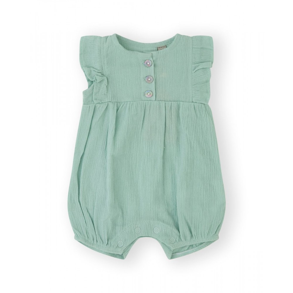 Pagliaccetto corto neonata Canada tiffany, apertura con bottoncini a clip sul retro, 100% cotone, dettaglio volant sulla manica