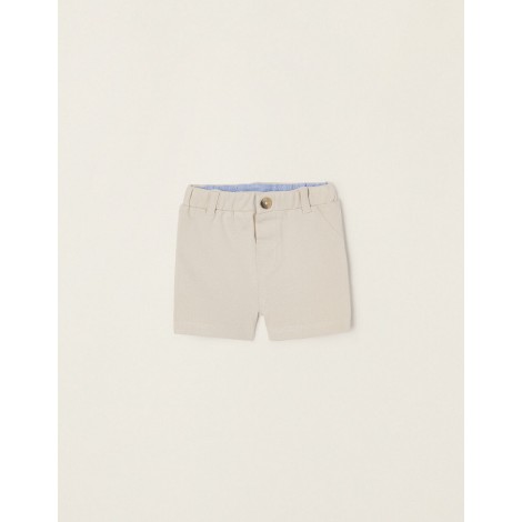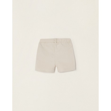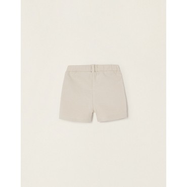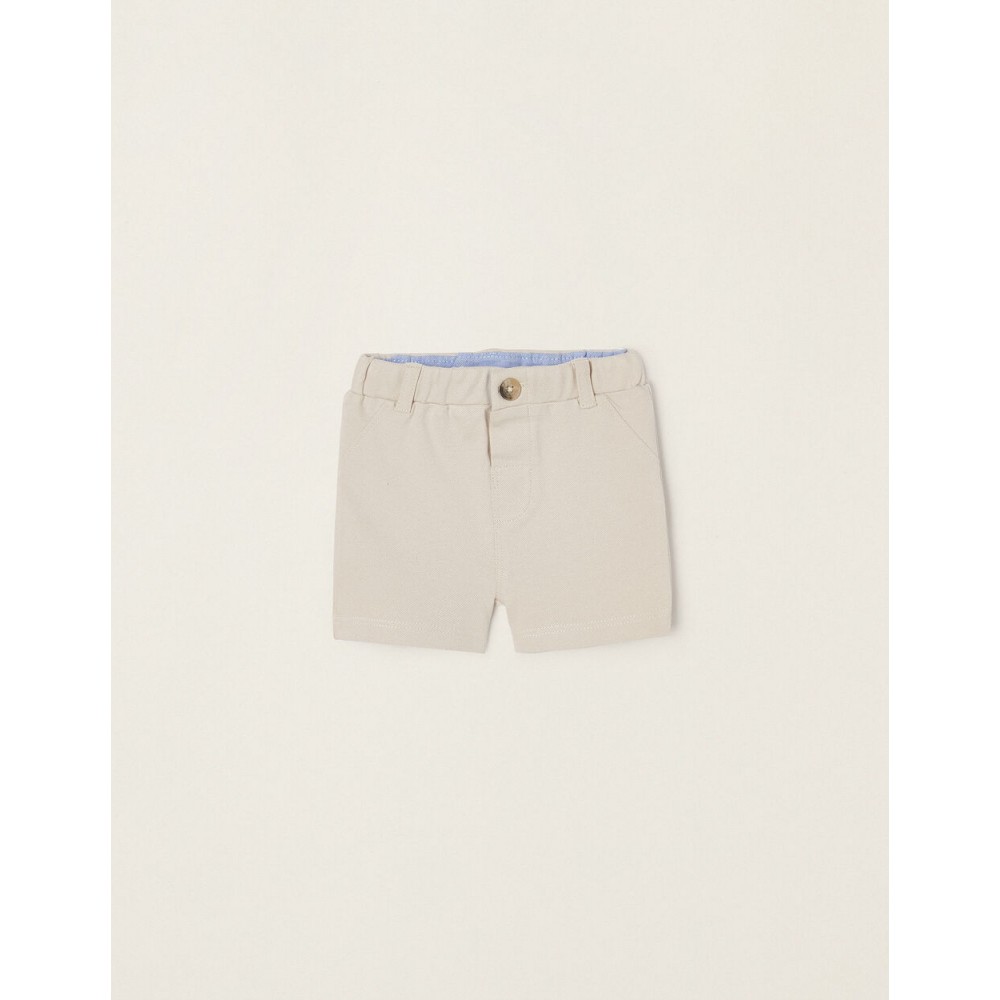 Shorts beige per neonato, in piquet di cotone con un tocco di stretch per maggiore comfort e libertà di movimento. Cintura elastica per vestirsi facilmente con un bottone sul davanti. Tasche decorative. Un capo comodo per tutti gli stili.