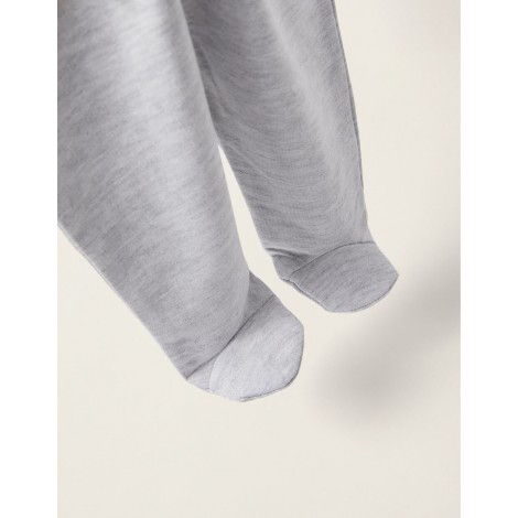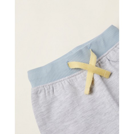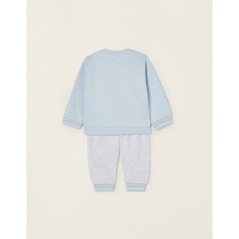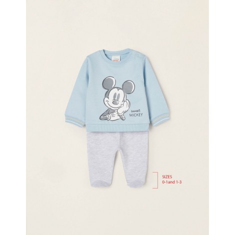 Set due pezzi in cotone felpato per neonato. Include una felpa blu con stampa frontale di Topolino, con bottoni automatici sulla spalla per vestirsi facilmente; e un paio di pantaloni grigi con coulisse. Estremità a costine con righe a contrasto. Un set che unisce praticità, comfort e un design moderno. We Care: Questo articolo è certificato secondo l'Oeko-Tex Standard 100, che garantisce l'assenza di sostanze nocive o irritanti per la pelle. Nota: pantaloni con piedi fino alla taglia 1-3M e pantaloni normali dalla taglia 3-6M.
