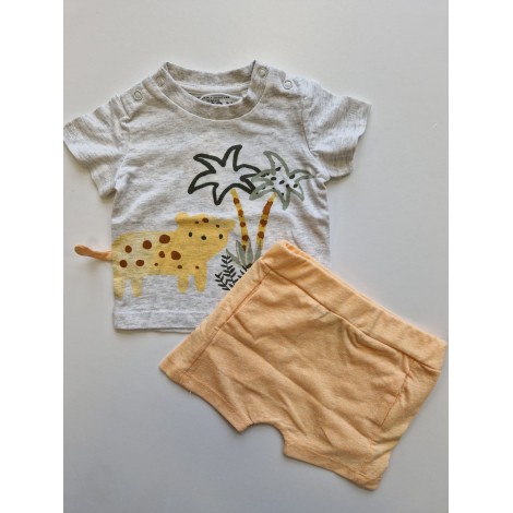 Completo neonato Losan grigio fantasia jungle, pantaloncino arancione con elastico in vita