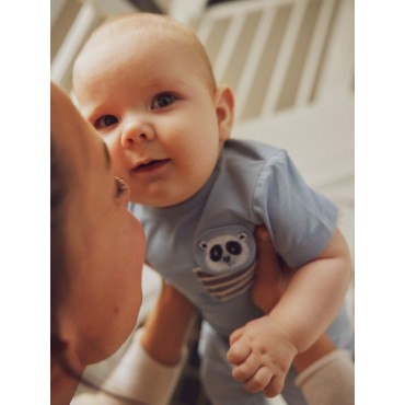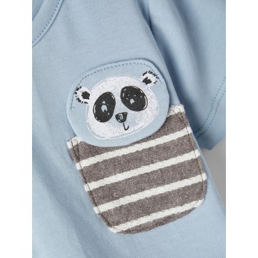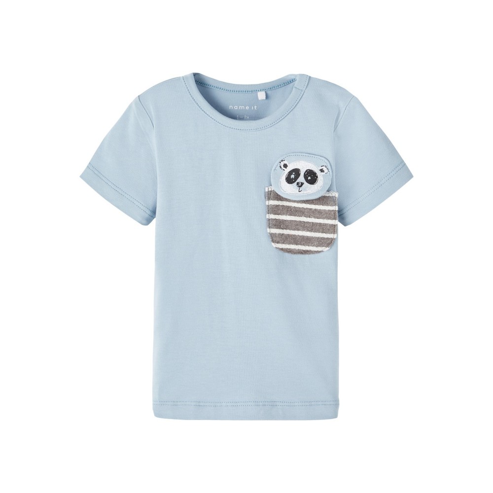 Maglia neonato Name it celeste dettaglio taschino panda