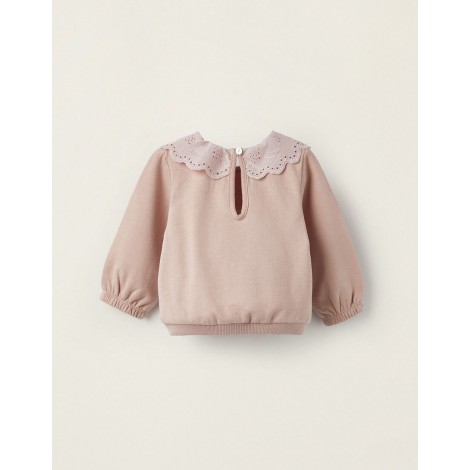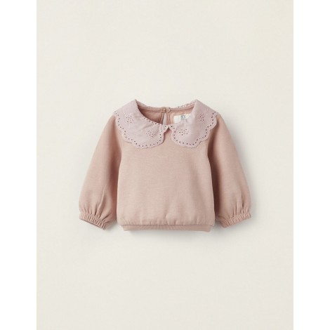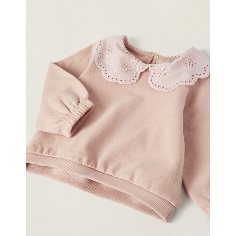 Felpa neonata Zippy rosa antico con colletto ricamato