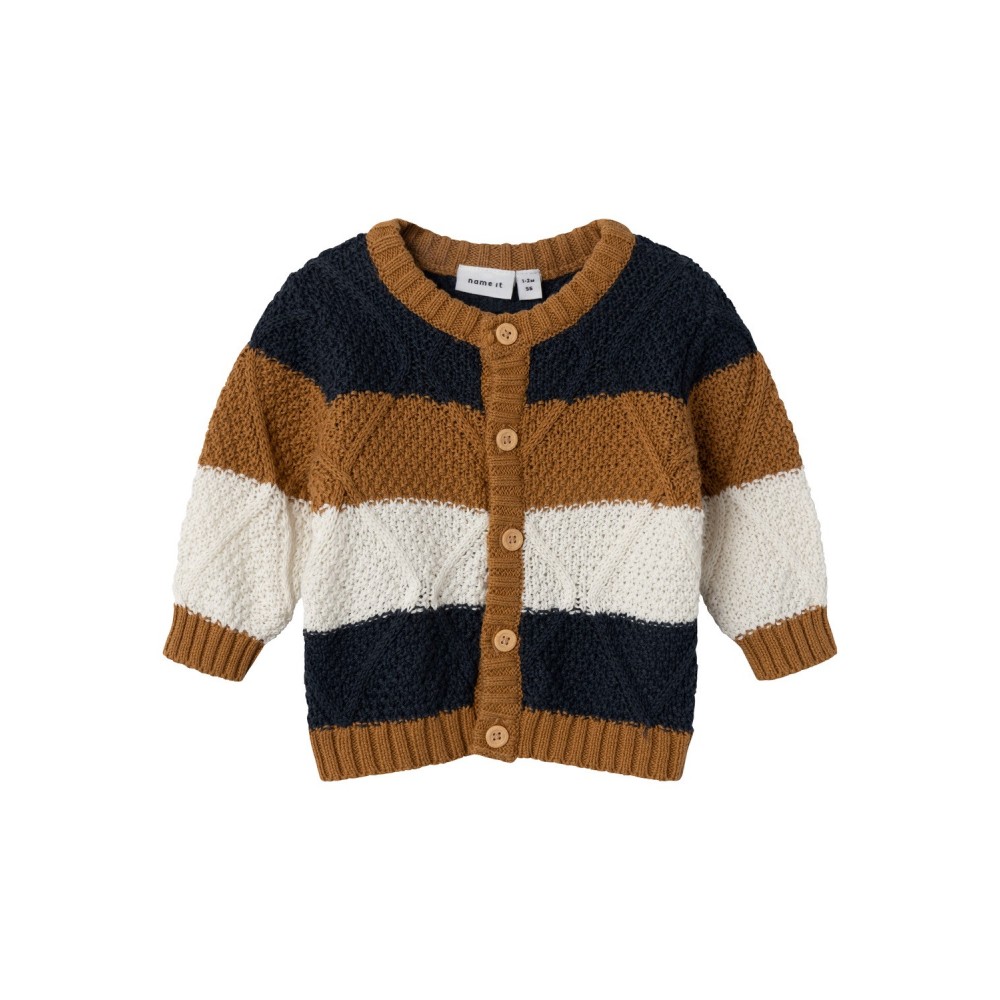 Cardigan neonato Name it nocciola fantasia righe blu