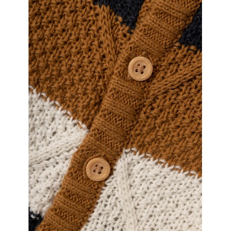 Cardigan neonato Name it nocciola fantasia righe blu, apertura con bottoncini