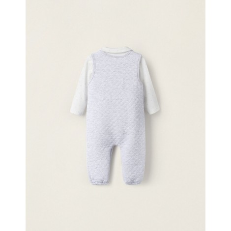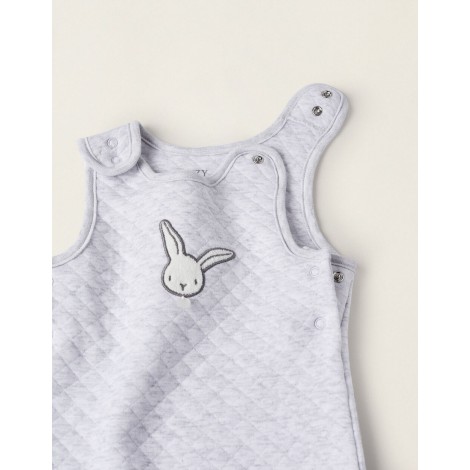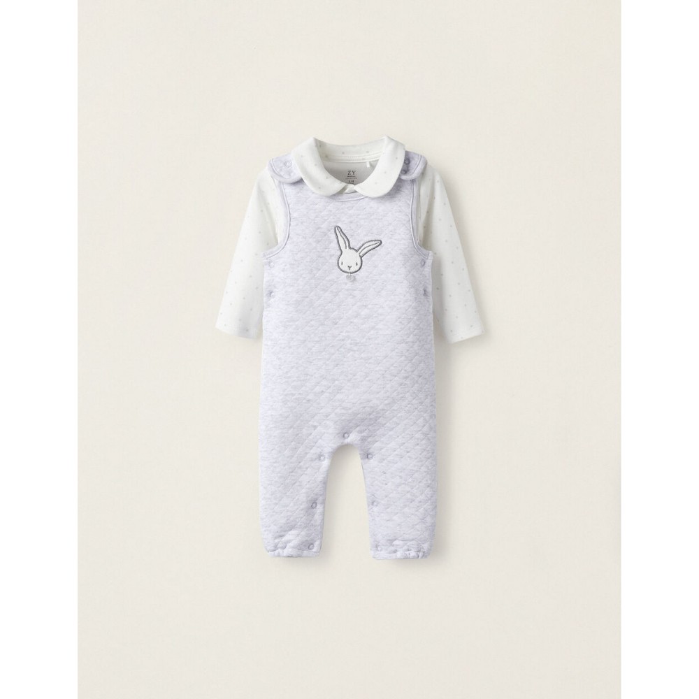 Set di due pezzi per neonati. Body bianco con maniche lunghe e pois grigi, 100% cotone. Con apertura completa sul davanti e sul cavallo con bottoni a pressione. Include anche una tuta grigia leggermente imbottita con un coniglio bianco sul davanti. Tuta con bottoni automatici sulle spalle, sui fianchi e sul cavallo. Elastici sugli orli per una migliore vestibilità. Bottone a pressione colorato come riferimento per facilitare la vestizione e il cambio del pannolino. Etichette interne stampate per evitare irritazioni alla pelle. Un completo simpatico e confortevole, l'ideale per garantire il massimo comfort al bambino nei primi mesi di vita.