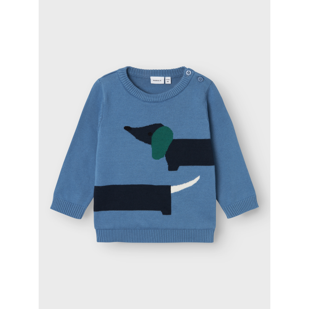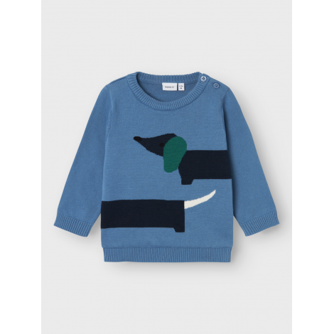 Maglioncino neonato Name it celeste bassotto ricamato