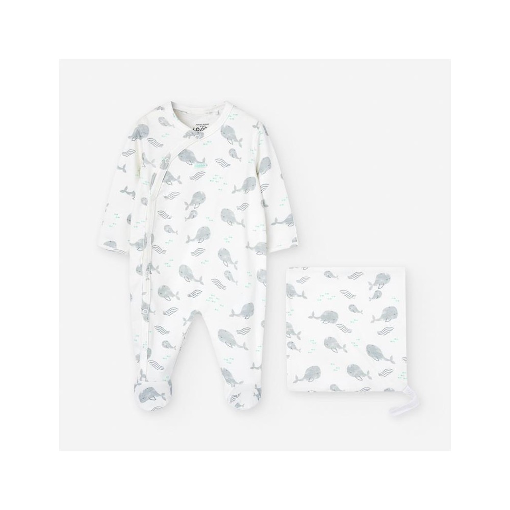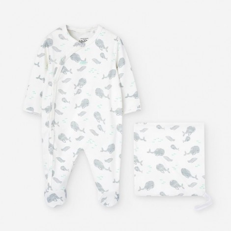 Tutina intera neonato Losan bianca fantasia pesci