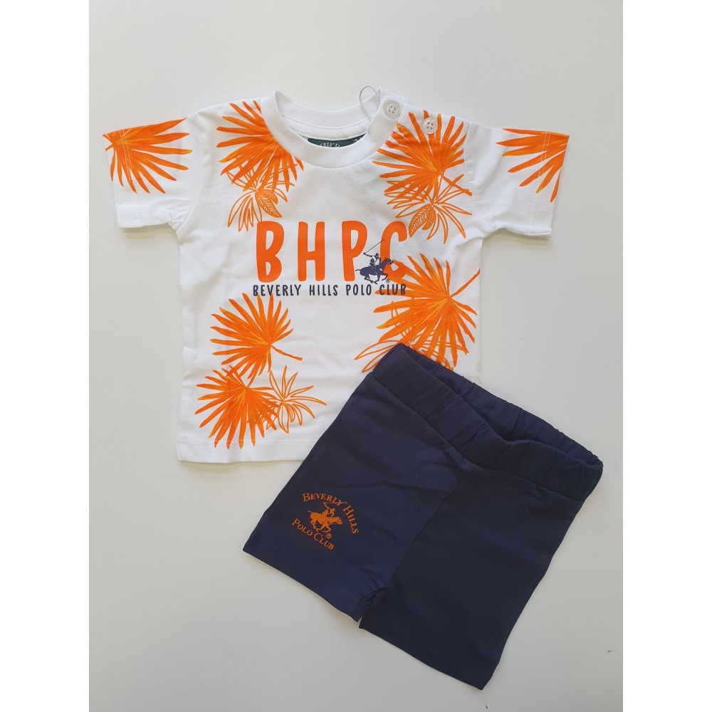 Completo neonato Beverly Hills Polo Club arancione fantasia tropicale