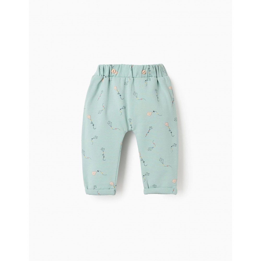 Pantalone neonato Zippy verde acqua fantasia aquiloni, interno in cotone felpato