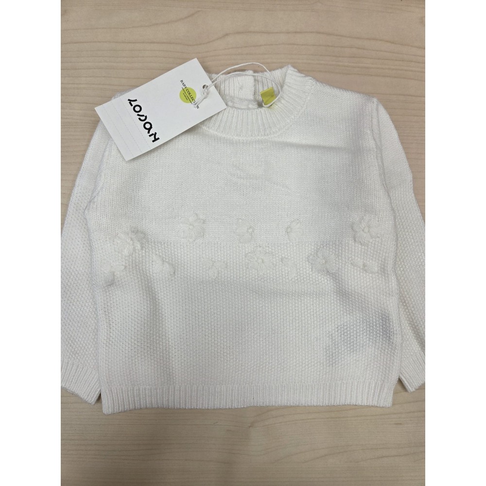 Maglione neonata Losan bianco fiori ricamati