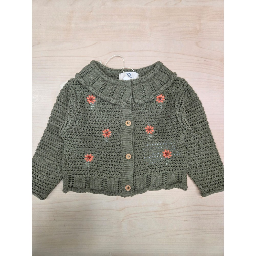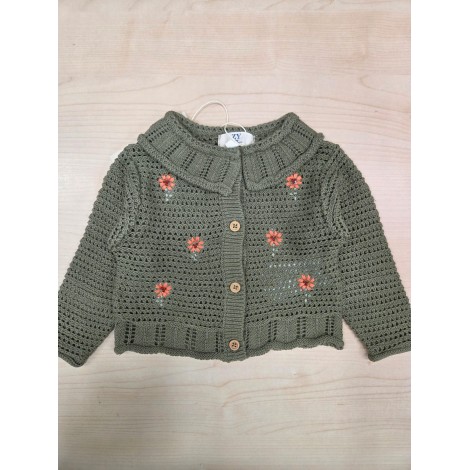Cardigan neonata Zippy verde fiori ricamati