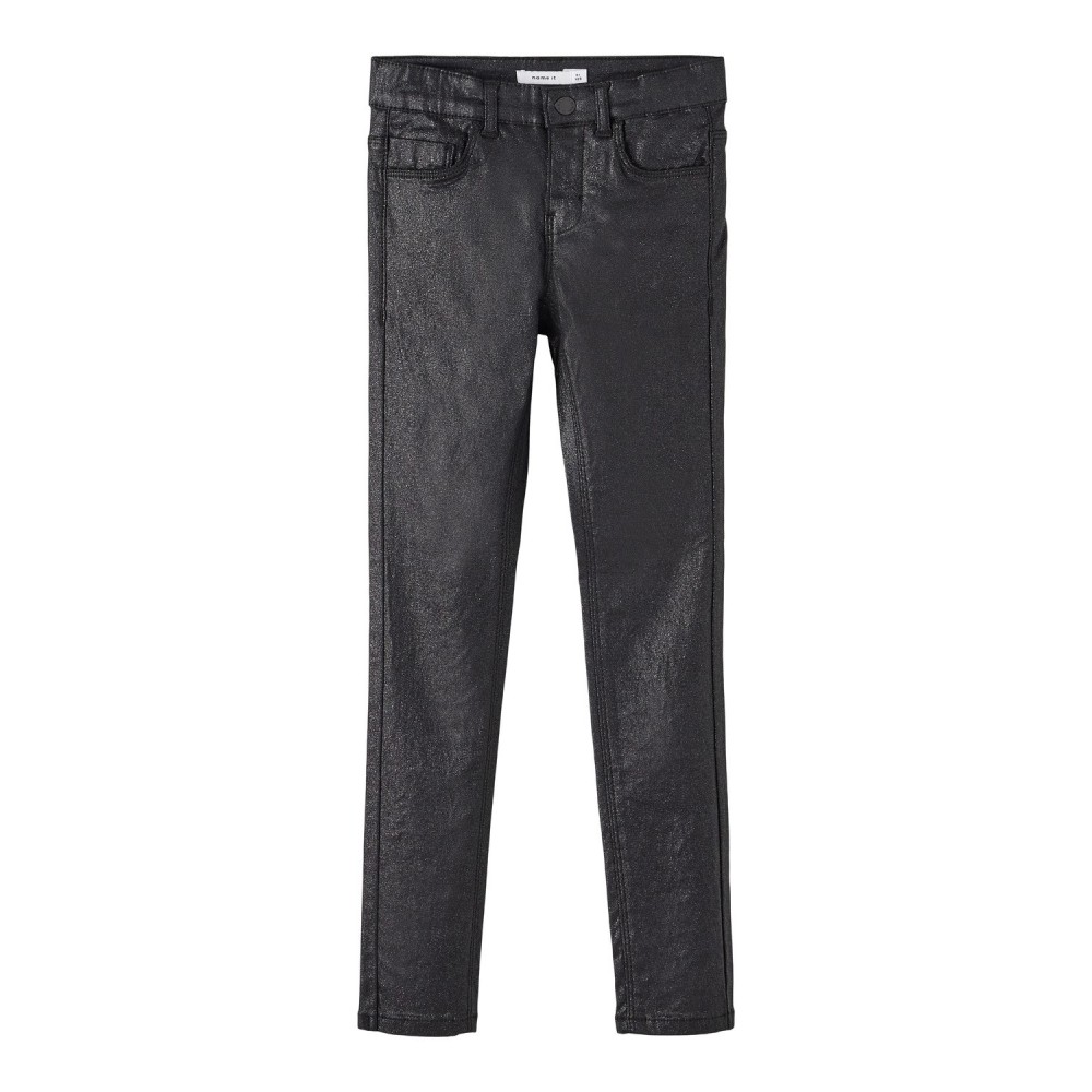 Pantaleggings bambina Name it glitterato, regol vita interno, apertura con bottone a gancio e zip