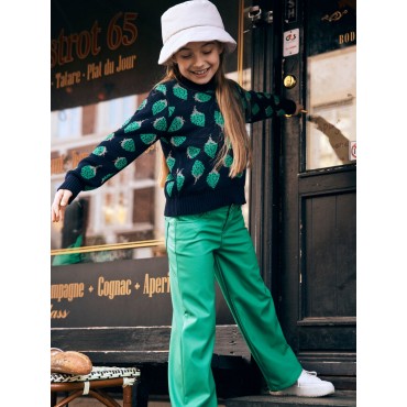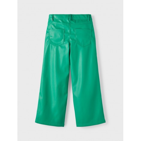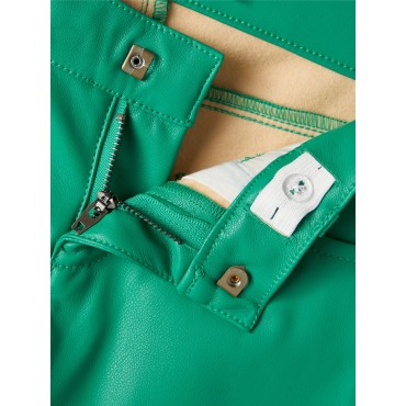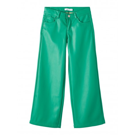 Pantalone bambina Name it verde in ecopelle, modello a gamba ampia, chiusura con zip e bottone a gancio