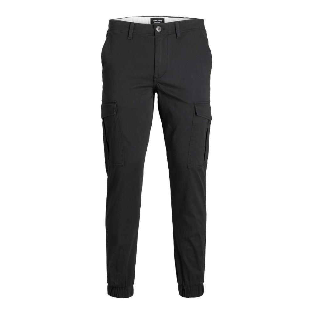 Pantalone Jack & Jones nero modello Cargo, con tasconi e polsini elastici, vestibilità slim con regola vita interno