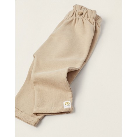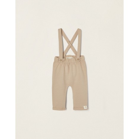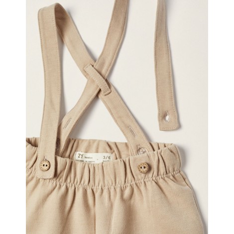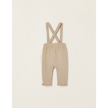 Pantalone neonato Zippy beige con bretelle logo leone