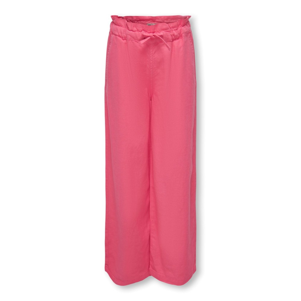 Pantalone bambina/ragazza Only rosa fluo in lino, elastico regola vita interno, gamba ampia