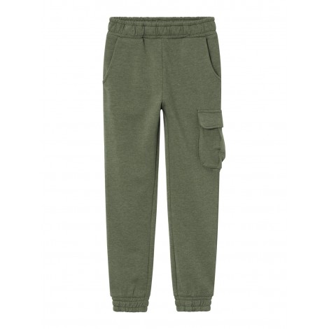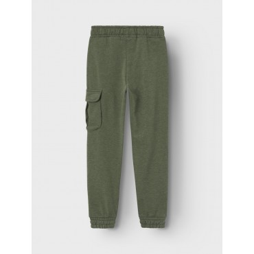 Sottotuta bambino/ragazzo Name it verde modello cargo, elastico regola vita interno, interno in cotone garzato, dettaglio tascone laterale, polsini elastici