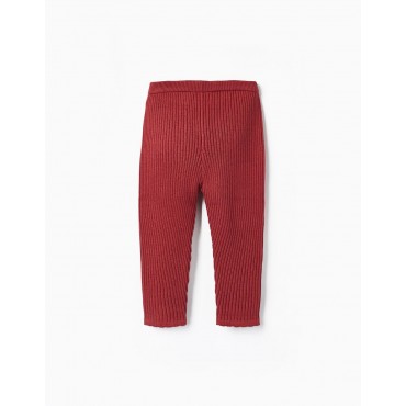 Leggings in maglia a coste rosso scuro per neonata. Cintura elastica con fiocco applicato sul davanti. Orlo con finitura ondulata decorativa. Leggings comodi e facili da indossare, perfetti da indossare tutti i giorni per i bambini.