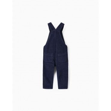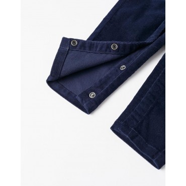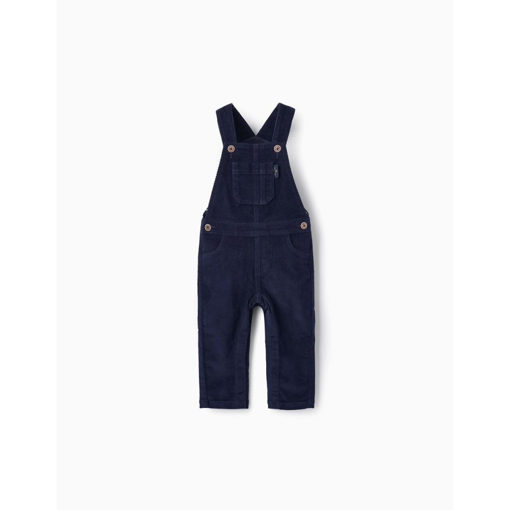 Salopette blu scuro per neonato, in velluto a coste di cotone con un tocco di elastan per maggiore comfort e libertà di movimento. Si chiude sulle spalline e sui fianchi con bottoni e sul cavallo con automatici nascosti per una facile vestizione. Cinghie regolabili. Cinque tasche. Un capo comodo e facile da indossare, perfetto da indossare tutti i giorni.