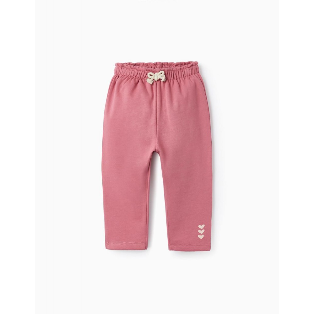 Pantaloni sportivi rosa per neonata, realizzati in misto cotone, con interno felpato per un maggiore comfort termico. Piccolo dettaglio a cuore su una delle gambe. Vita elastica per una migliore vestibilità. Fiocco in cordoncino bianco che adorna la vita. Pratici e comodi, questi pantaloni sono un'ottima opzione per l'uso quotidiano dei bambini. Un articolo della collezione Mix & Match, perfetto per creare altri abbinamenti e look divertenti.