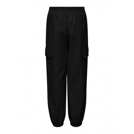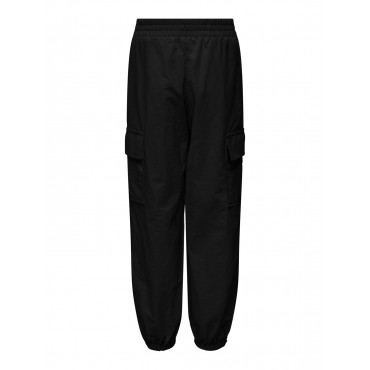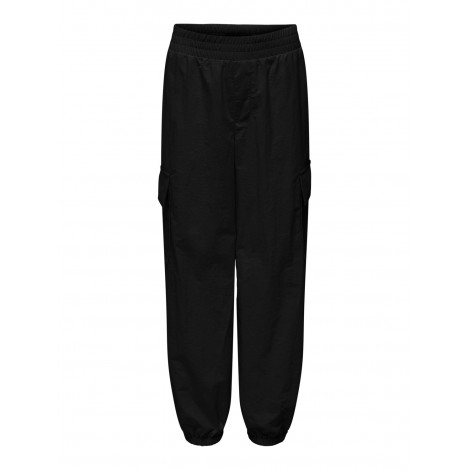 Pantaloni bambina/ragazza Only nero modello cargo, vestibilità larga, elastico regola vita interno, elastico alla caviglia, dettaglio tasconi laterali
