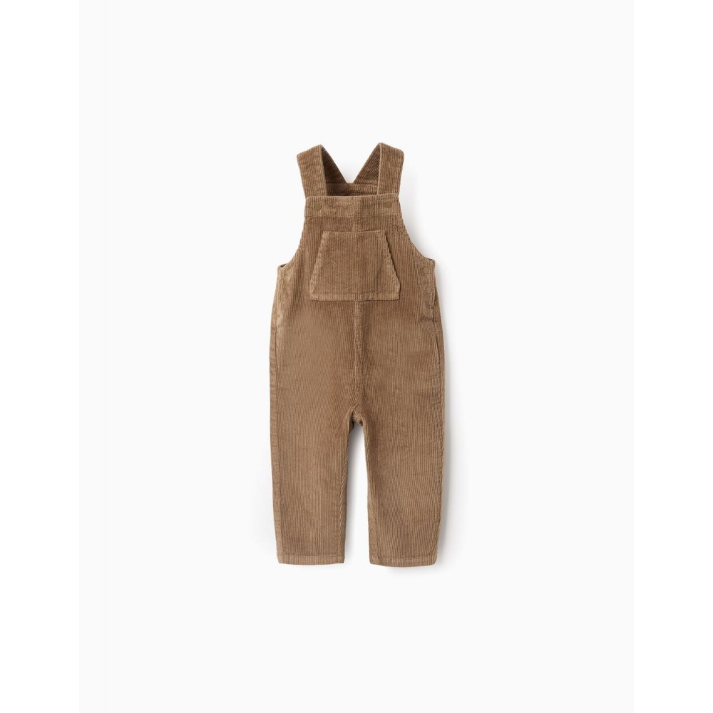Salopette cammello per neonato, in velluto a costine con un tocco di stretch per maggiore comfort e libertà di movimento. Bretelle regolabili. Tasca a marsupio e tasche posteriori. Bottoni automatici laterali per una vestibilità perfetta. Per creare un look originale e pieno di personalità.