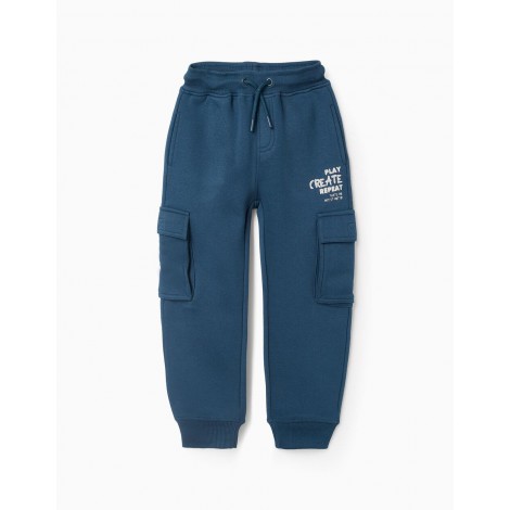 Joggers turchesi per ragazzi, con interno felpato per un maggiore comfort termico. Stampa in rilievo su una delle gambe. Tasche cargo e tasche laterali. Elastico in vita con coulisse. Polsini a costine per una vestibilità perfetta. Un'opzione comoda e molto comoda.