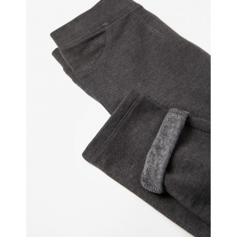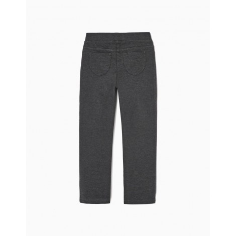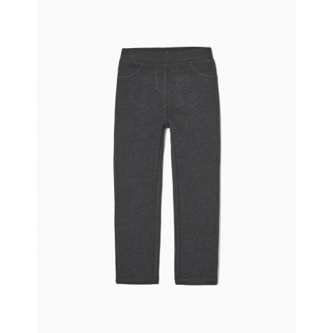 Jeggings grigio scuro per bambina, in cotone elasticizzato per un maggiore comfort e libertà di movimento. Con interno spazzolato per un maggiore comfort termico. Vita elasticizzata per una facile vestizione. Tasche frontali decorative e tasche posteriori funzionali. Un capo comodo e facile da indossare, perfetto per la vita di tutti i giorni.