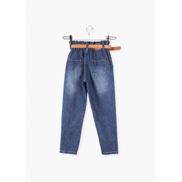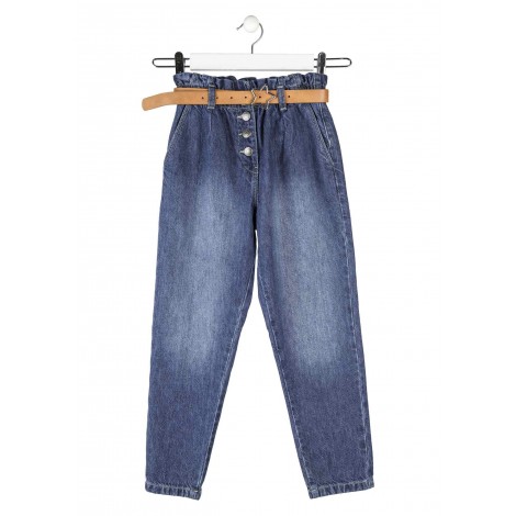 Jeans bambina Losan modello a caramella, vita alta, tasca a filo, regola vita interno, chiusura con bottoni
