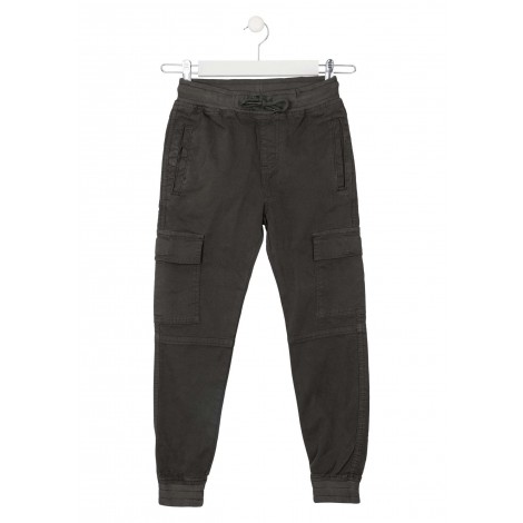 Pantalone bambino Losan modello cargo verde scuro, con tasconi, regola vita interno, polsini alle caviglie